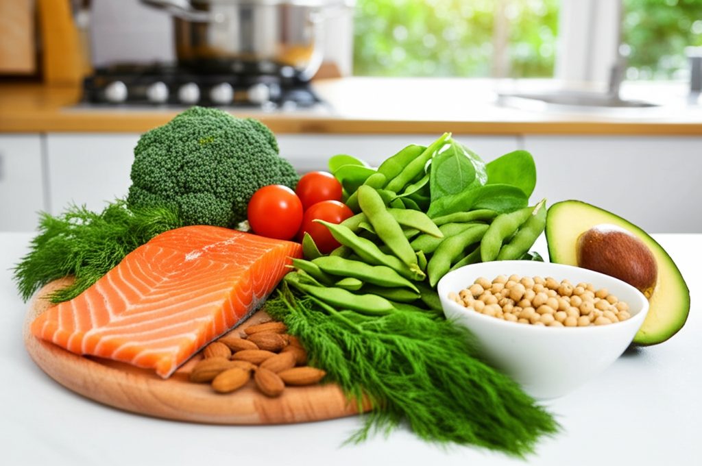 Les aliments riches en phytoestrogènes, en calcium et en oméga-3 sont particulièrement recommandés.
