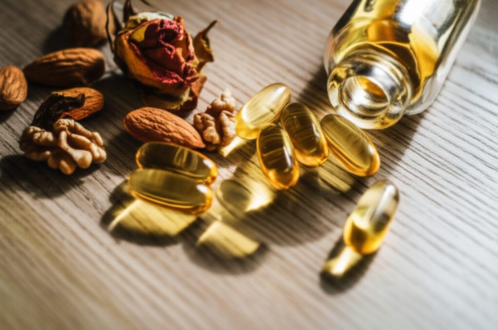 - Acides gras oméga-3 : Présents dans l’huile de poisson et certaines huiles végétales, ils aident à maintenir la barrière cutanée et à réduire l’inflammation, ce qui peut contribuer à une peau plus hydratée.